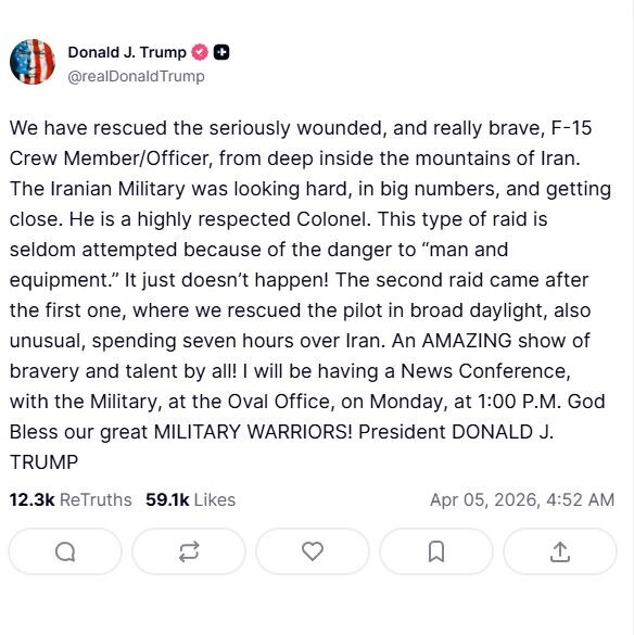 도널드 트럼프 미국 대통령은 6일 적진에서 부상한 미군 2명을 구출한 작전에 대해 “역사적”이고 “위험한” 임무였다며 높이 평가했습니다.